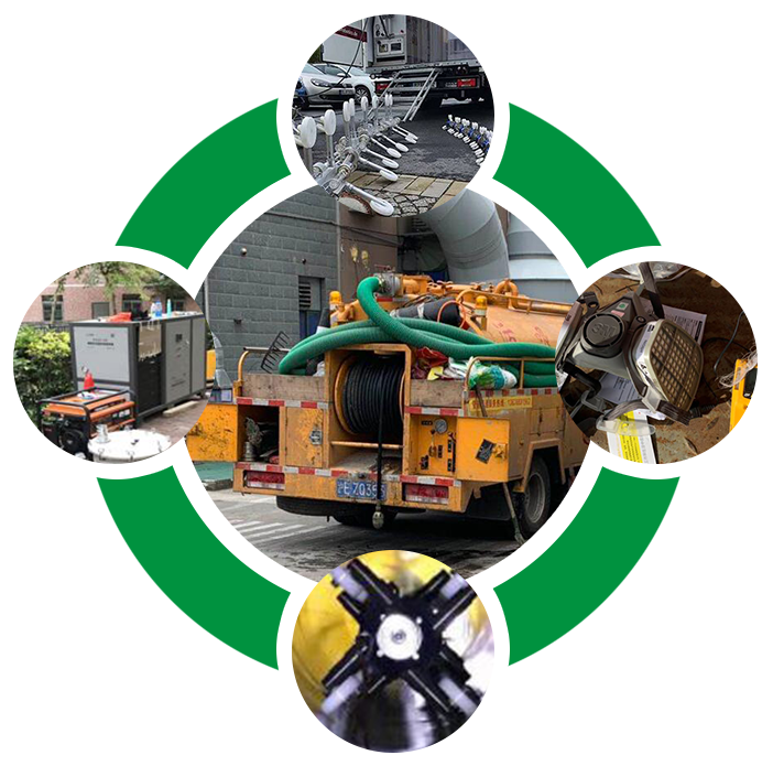 公司引进高压清洗车,吸污车、长距离工业管道通球、管道QV检测/cctv检测评估、抓斗清淤车,垃圾运输车,下水道疏通车,脉冲设备,清管器,排污泵,小型高压水疏通机,充氧换气泵,防毒潜水衣,防腐服,有害气体检测仪等现代高科技设备。